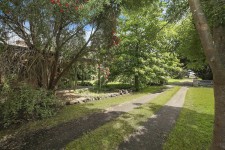 Privacy is provided from the road with a large border of established trees.