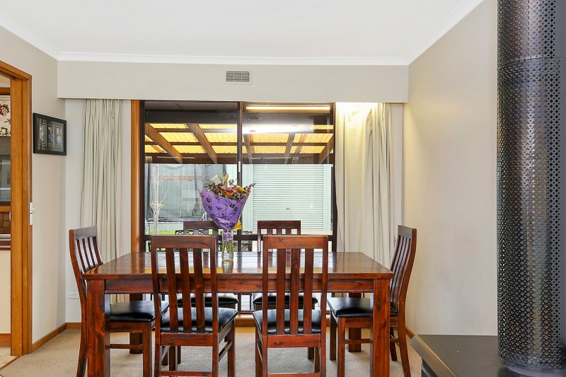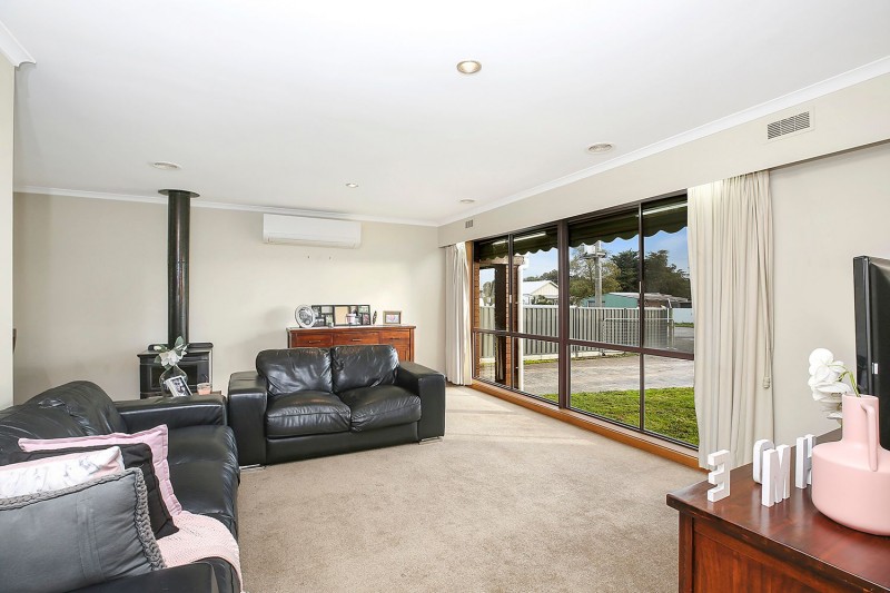 This well presented, brick veneer home has broad appeal. Offering three bedrooms, two with BIR’s and the master with ensuite and walk in wardrobe. The open plan living/dining space features a wood fire, split system and there is also ducted gas heating for year-round comfort. There is a second living area/rumpus room leading to the paved alfresco entertaining area. The galley style kitchen comprises electric oven and cooktop and stainless-steel dishwasher. There is a stylish family bathroom with separate toilet. Outside, the property offers a pleasant rural outlook, two generous sized sheds, one measuring 14 x 8m (approx) with a pot belly stove, a single carport and a low maintenance backyard. Located just minutes from the centre of town and close to primary schools. This property would be ideal for the first home buyer, family or the investor.