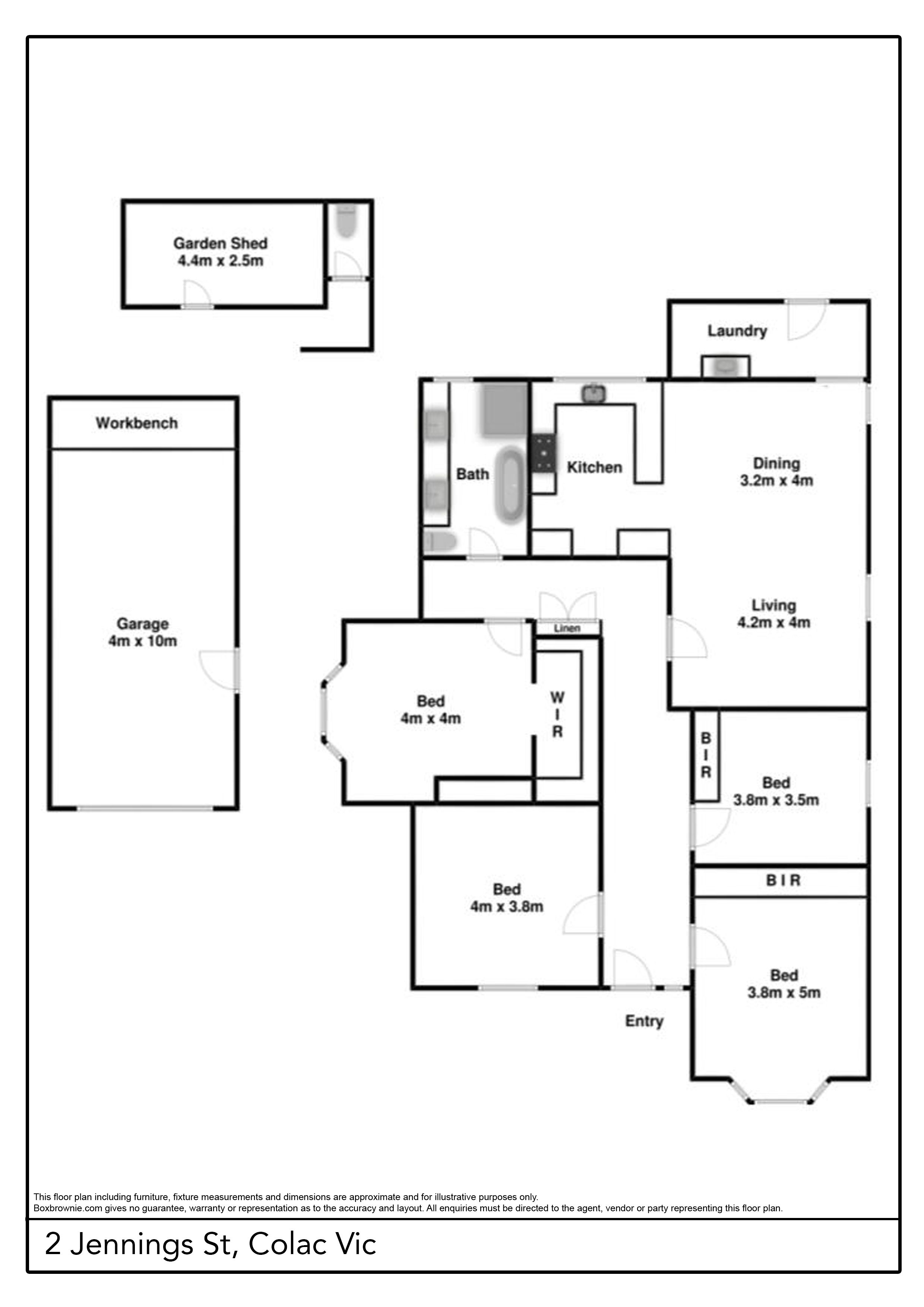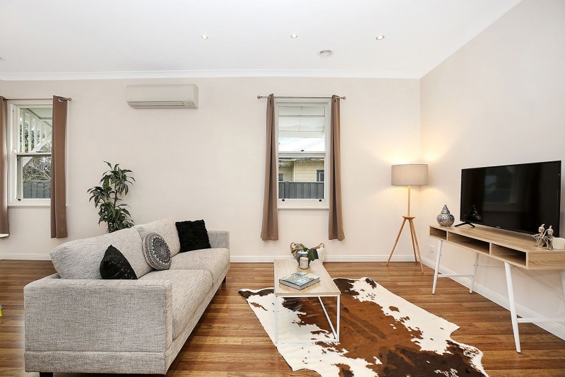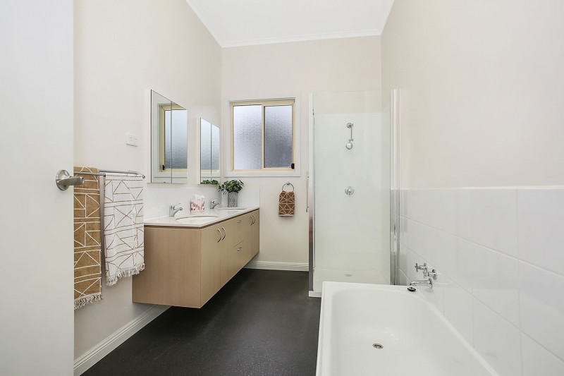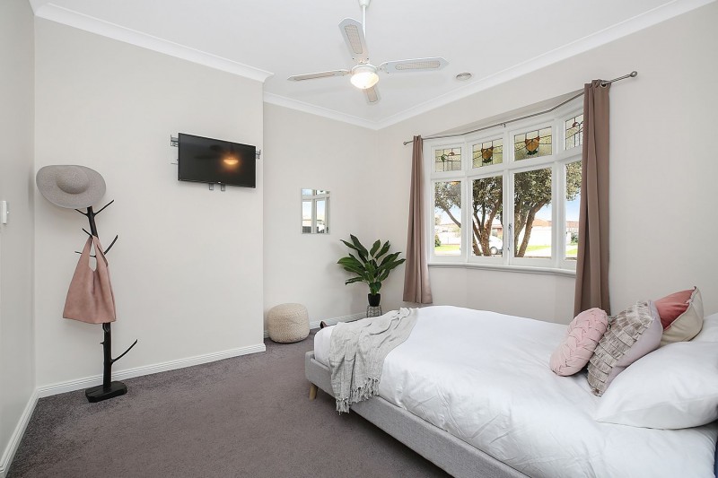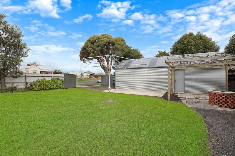 This four-bedroom home has been updated with a stylish modern twist but retains much of its classic charm. Step through the decorative leadlight entry into the central hallway where you’ll find the large master bedroom featuring a stunning bay window with decorative lead light panels as well as a practical walk in wardrobe. The other bedrooms are all spacious, two have BIRs and there is another gorgeous bay window in the east facing bedroom room. The stylish family bathroom has a shower, bath and modern double vanity. The living space has an open-plan design with a delightful neutral colour palette and beautiful timber floors to complement any decorating style. The modern kitchen features gas cooking, a stainless-steel dishwasher and ample cupboard space. The home also features gas ducted heating and split system for year-round comfort. Step outside and you’ll find a cosy deck for a morning coffee, an undercover timber patio with an in-built BBQ positioned under an established grape vine providing a perfect summer alfresco dining space. The large garage has a concrete floor, power and built in workbench making it an ideal workshop or hobby area. There is a separate garden shed and plenty of room for children and pets in the secure backyard. This impressive property is set on a large corner block situated just minutes from the medical precinct and the centre of Colac.