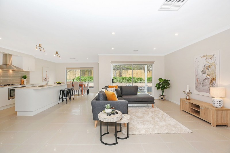 This newly built contemporary home, set in an elevated position in Elliminyt, has been designed with style and modern-day luxury in mind. Comprising of four bedrooms, the impressive master suite is complete with walk in wardrobe, ensuite and features soundproof insulation. The three bedrooms are all situated at the other end of the home and feature walk in wardrobes. Lovely big windows let in plenty of natural light and the classic white colour palette give this home a wonderful sense of spaciousness. With two dedicated living areas, one within the open plan design living space and the other behind double doors with soundproof insulation perfect for a home theatre, music den or to simply relax with a good book. There is also a dedicated home office. The chic modern kitchen features a 900mm gas cooktop, electric oven, walk-in pantry, Caesarstone benchtops, a stainless-steel Vento dishwasher and if you have a water dispensing refrigerator, we have you covered with a plumbing connection installed. Your comfort is assured with double-glazed windows at the front of the home, evaporative cooling and ducted heating throughout. Step outside and you’ll find an alfresco dining area, two car garage with electric roller door and lovely landscaped gardens in the front and backyards. This superb family home is situated in a quiet court in a sought after location just a short drive to the centre of Colac.
