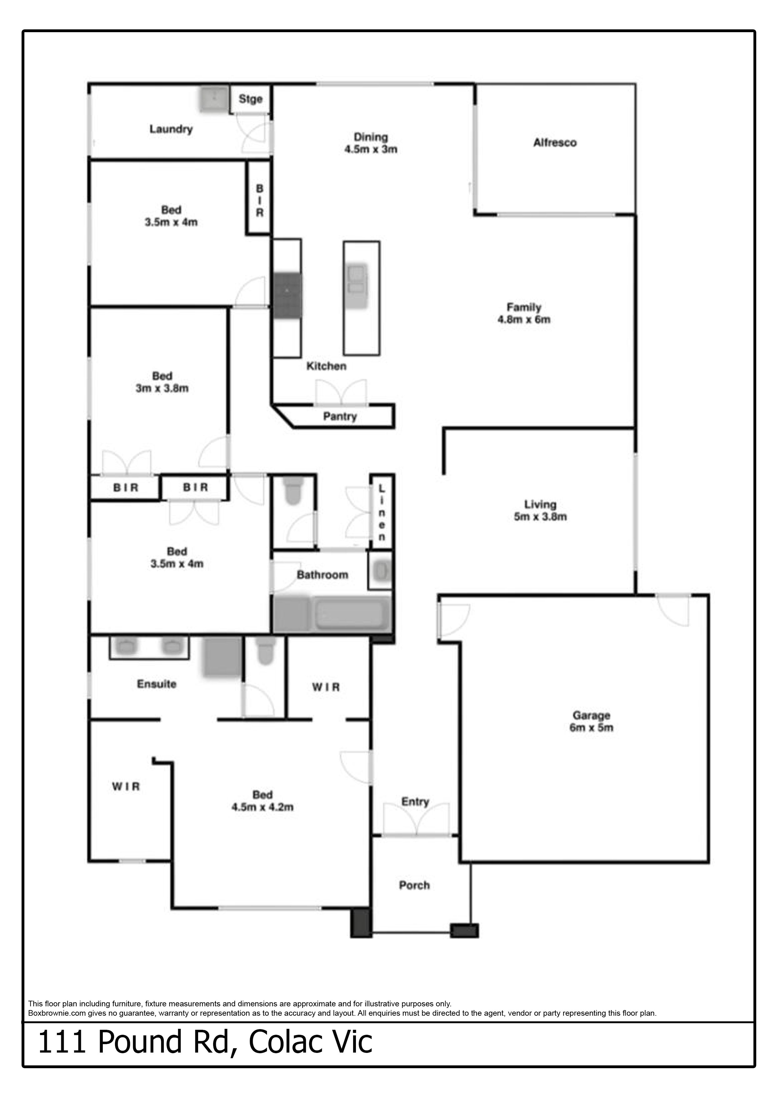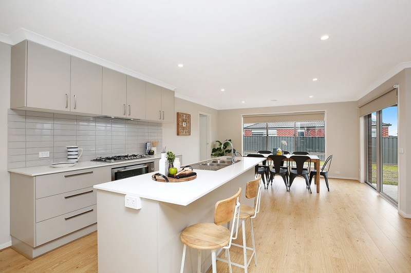 Recently completed by Dennis Family Homes, this stunning four bedroom home offers an abundance of features. The master bedroom has been cleverly designed with spaciousness in mind including an ensuite with shower, toilet and double vanity as well as His and Her walk- in wardrobes. The open plan design includes two living areas, one that can be used as a retreat and another that is perfect for family time. The entertainer’s kitchen provides you with a 90 cm gas cooktop and electric oven, a stainless steel Vento dishwasher, Caesarstone benchtops and built in pantry. The three remaining bedrooms all have built-in robes. The main bathroom offers a shower, bath and separate toilet and can also be accessed via by one of the bedrooms. The home features quality fixtures and fittings including LED lights, block out blinds and gas ducted heating. Outside you’ll find a north-facing, secluded alfresco area ideal for relaxation, entertaining or an area to enjoy your morning coffee. The property offers you a blank canvas for you to develop the garden of your dreams. This home is in a great location close to schools, sporting facilities and a short drive to the centre of Colac.